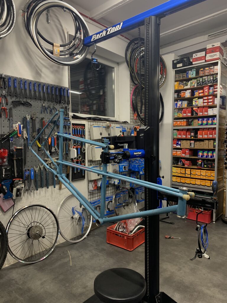 Prace rozpoczęły się od rozbiórki roweru na pojedyncze elementy. Każda śrubka, nakrętka i część została starannie oczyszczona – oryginalne elementy zachowano, ale dzięki dokładnemu odrdzewianiu i polerowaniu odzyskały one swój dawny blask. Następnie wszystkie metalowe komponenty zostały zakonserwowane, aby zabezpieczyć je przed przyszłą korozją.