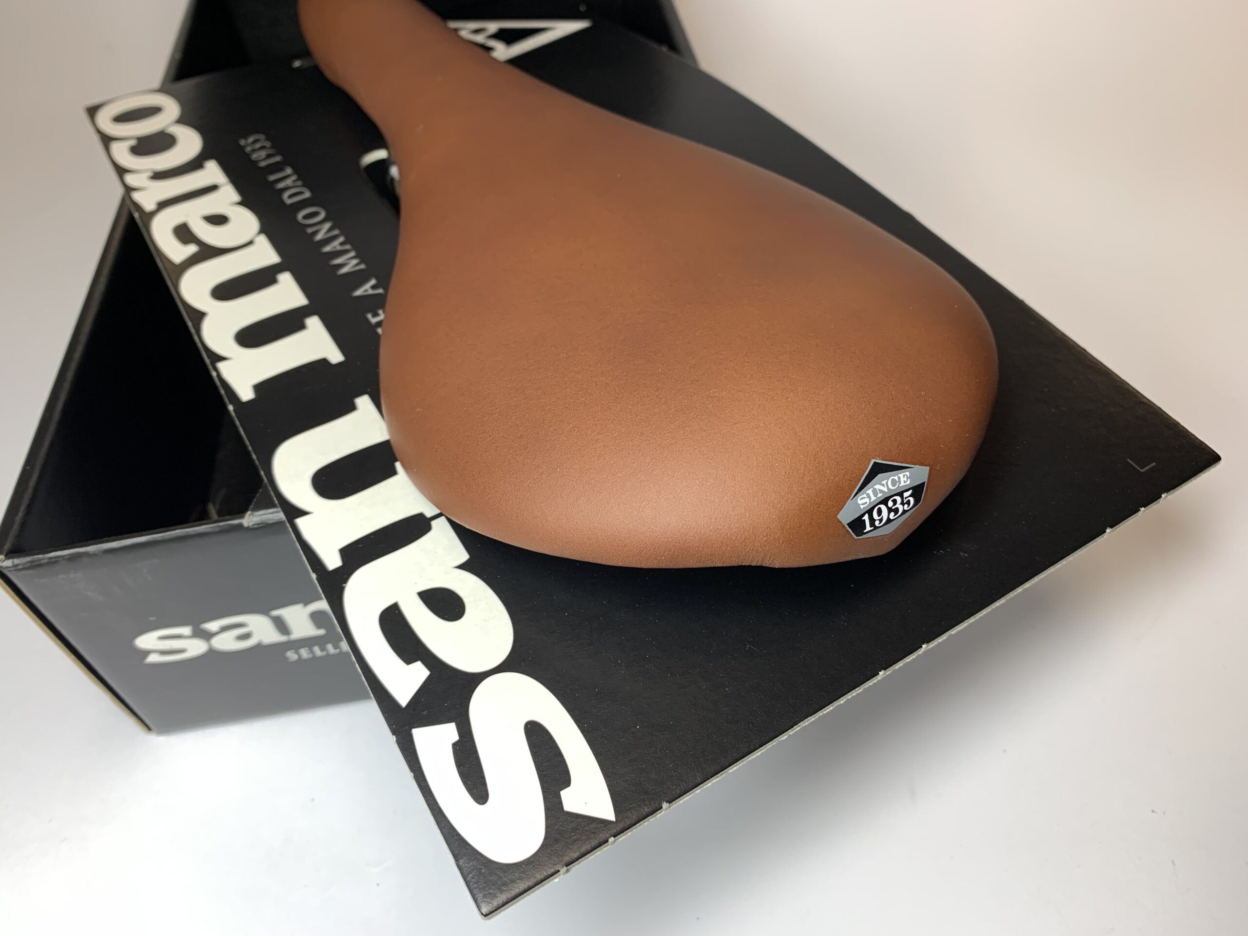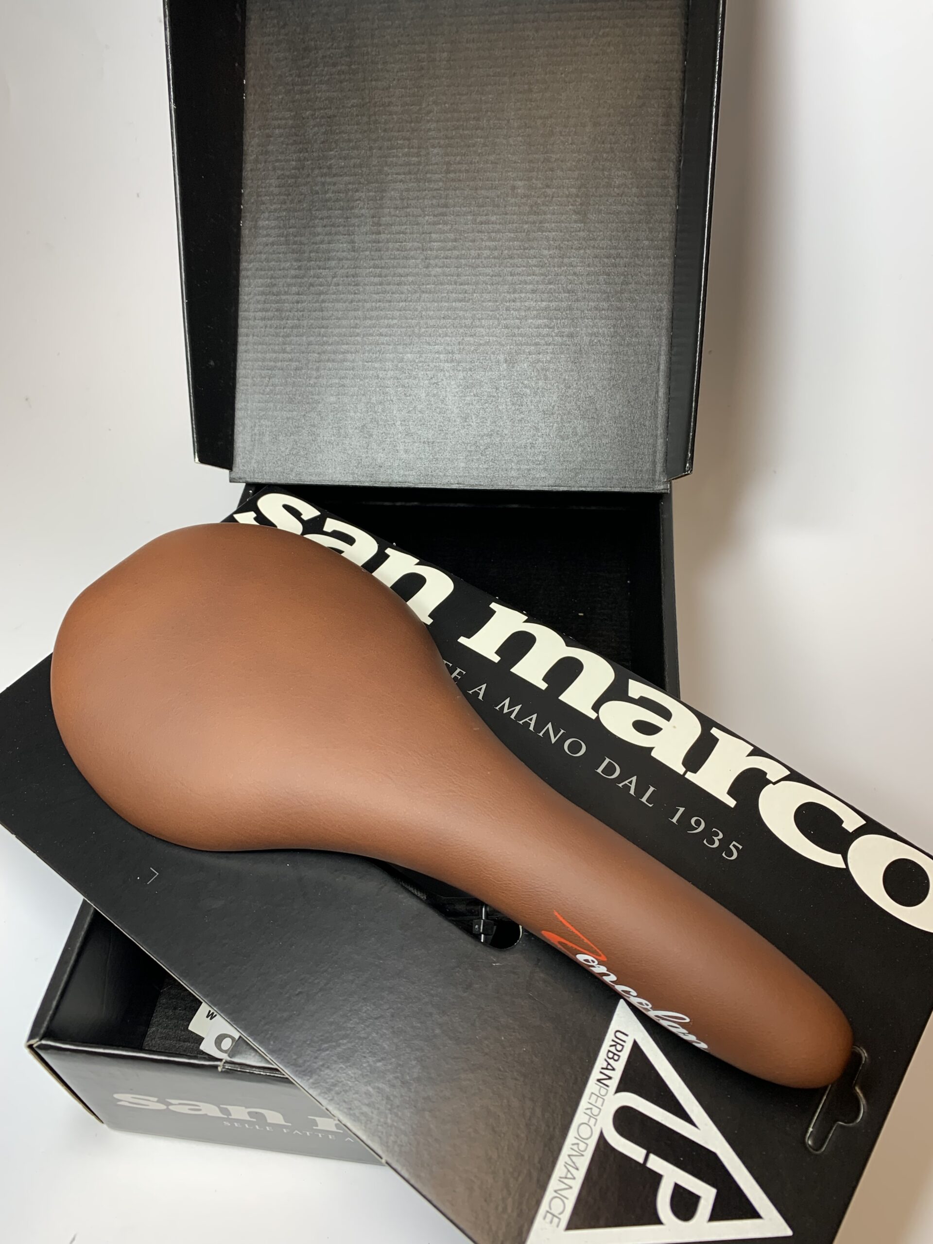 Siodło Zoncolan Urban marki San Marco to eleganckie siedzisko o brązowym, syntetycznym wykończeniu imitującym skórę.